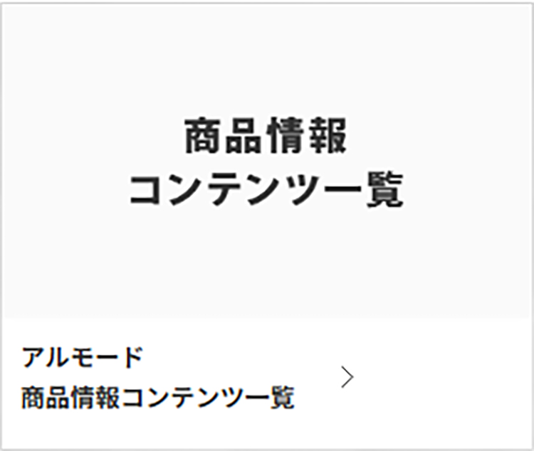 「アルモード商品情報コンテンツ一覧」は「お役立ち情報」からご覧ください。
