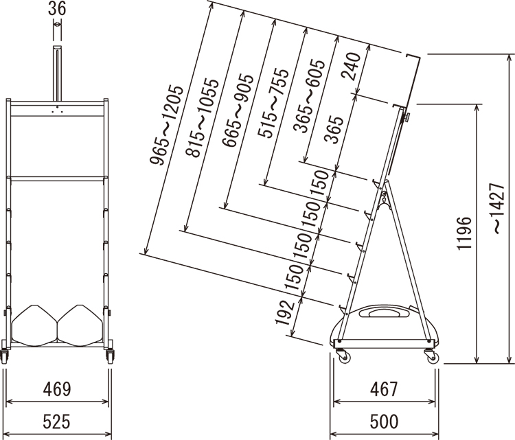 総高さ1196~1427㎜、奥行き500㎜、パネルサイズB3ヨコ~B1まで対応の中サイズ。屋外・屋内どちらでも使えるため、飲食店、物販店、サービスショップ、公共施設、観光地、イベント会場など、様々な場所で使えます。