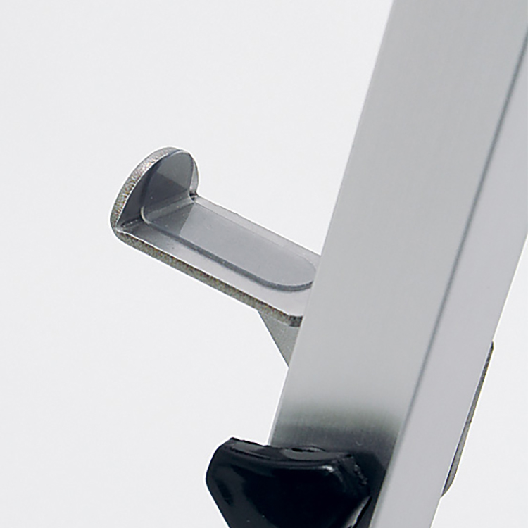 側辺の穴にパネル受けをつまみネジで取り付けます。取り付け位置はパネルサイズに合わせて5段階に調整できます。