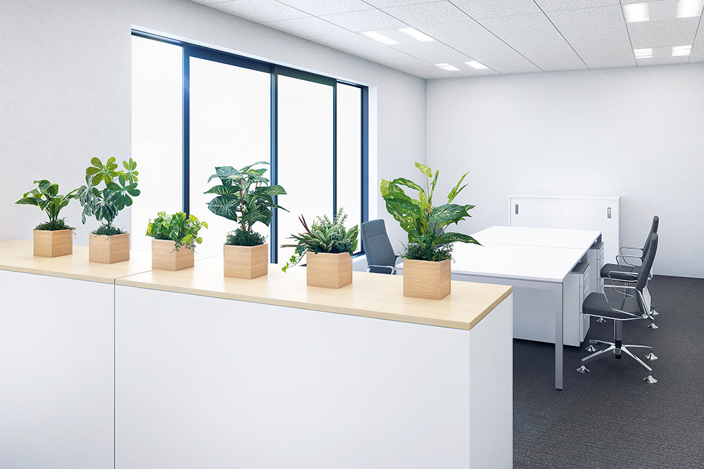 汎用の名が示す通り、オフィス、店舗、施設、官公庁、公共空間など、用途を限定せず、既存の環境に手軽に緑を取り入れられることが特徴です。
