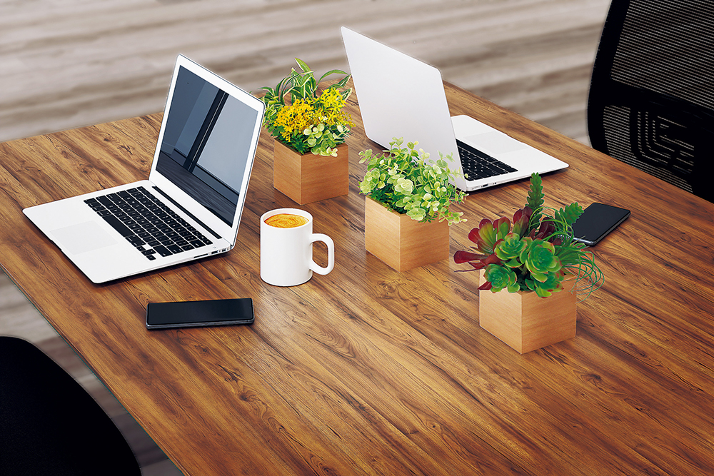 卓上にポットを1つ置く、パーテーションに1個飾る、それだけでも雰囲気は違ってきます。その後、さみしい所やグリーンを配置したい場所に置いて、数を増やしていくといいと思います。