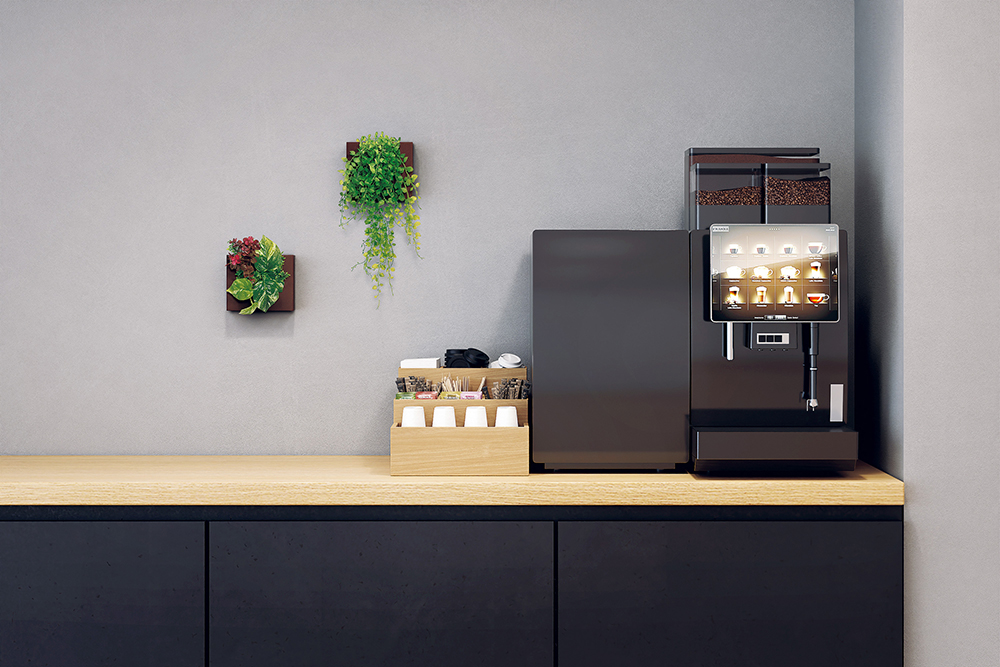 グリーンモードの壁面ユニットを使えば、壁一面を自然のアートのように演出可能。カフェのような雰囲気をつくり、社員のリラックスタイムを充実させます。