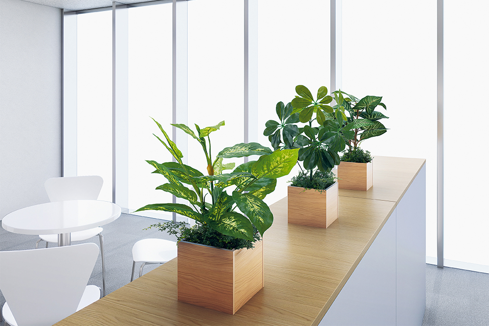 光沢感を抑えたグリーンモードの人工観葉植物は、どんな内装にもなじみ、企業イメージを向上させます。