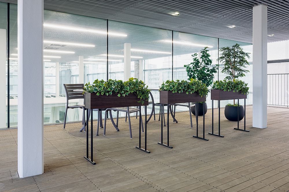 通路と食堂やワークスペースと商談スペース、入口とワークスペースを仕切るのに役立ちます。装飾プランターは観葉植物に代わる新しい装飾スタンドで、デザイン化されたスタンドが空間をおしゃれに演出します。デザインやサイズ(特に高さ)、スタイルが豊富なので、お好みのものをお選びいただけます。