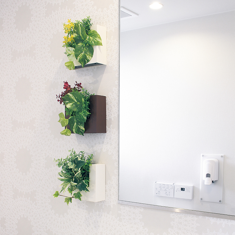 人工グリーンなら水やり不要で、衛生的にも安心です。