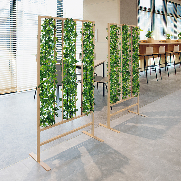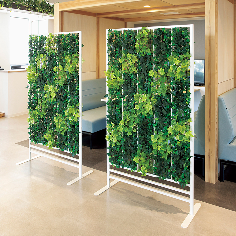 圧迫感の少ないスリムタイプを選び、明るいグリーンをアクセントにすることで清潔感と親近感を演出できます。限られたスペースでも、自然な印象を持たせる装飾兼パーテーションとして機能します。