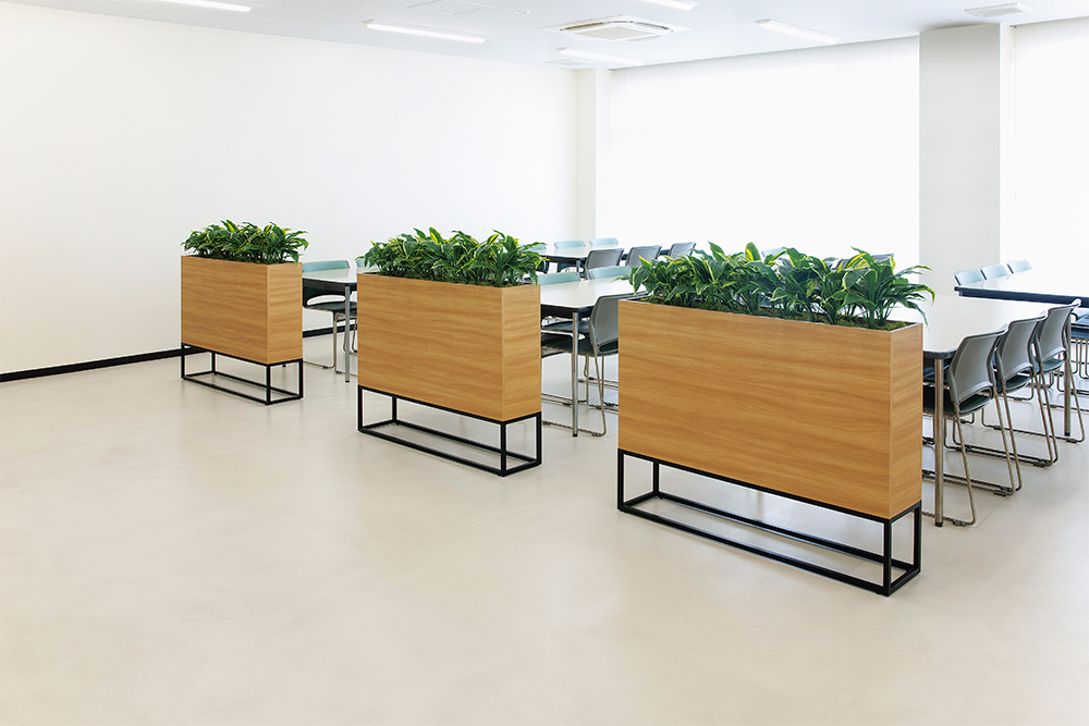 ボリュームのあるプランタータイプのパーテーション。足元まで隠せてしっかり仕切れます。インテリアに合わせやすいデザインなので、どこでも使えます。