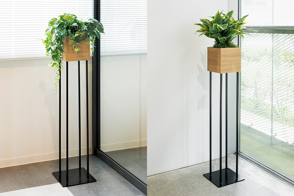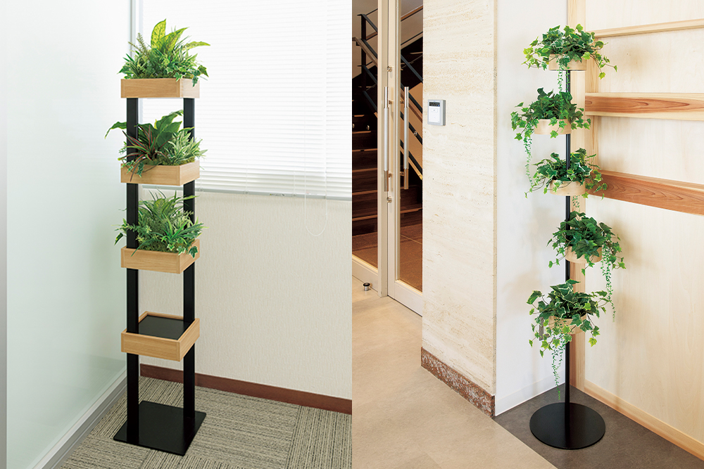 飾るというのは、グリーンスタンドのもともとの用途の一つです。グリーン装飾スタンドとして、観葉植物に代わるインテリアアイテムが狙いです。飾るアイテムとして、様々なスタイルがあればいろんな演出が可能になります。