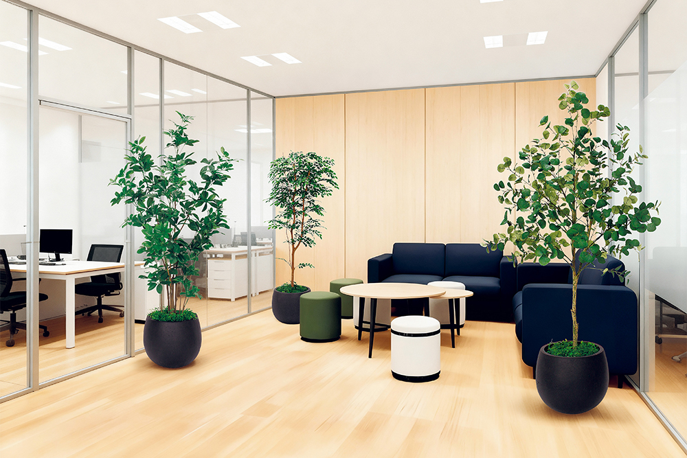 樹木は生き物です。植物には日の光と水、肥料、そして一定の風通しが必要です。枯らしてしまった植物に申し訳なく思い、同じ失敗を繰り返してはいけないと社内用は人工樹木に切り替えました。それからは水やりも肥料も不要、外に出して日光に当てることもいらず、会社としては手間が減って大助かりになっています。
