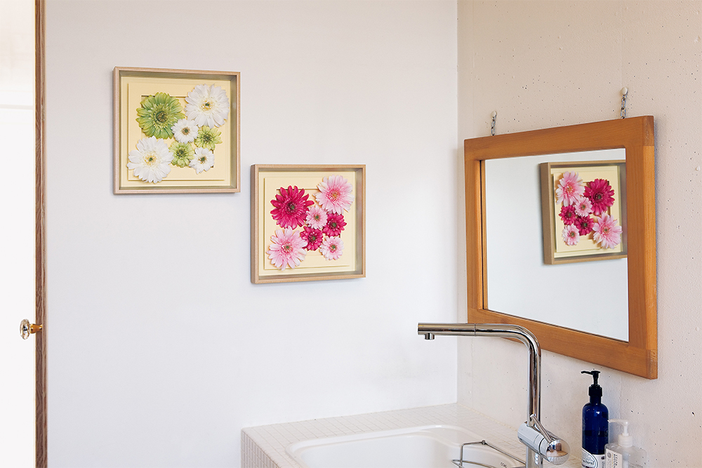 時代の流れから、アートに代わる新しい装飾品として開発したのが、様々な素材(ピース)を額装コーディネートした「ARTDECOアートデコ」という商品です。インテリアを「飾る企画」として様々な飾り方を模索しながら生まれたものでした。