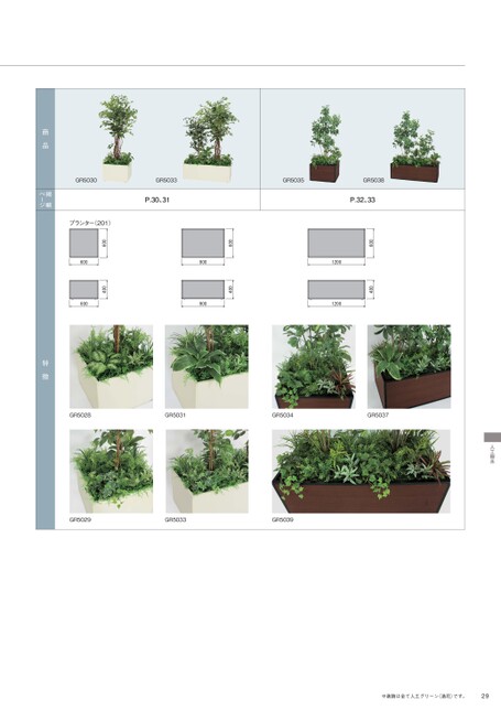 ※装飾は全て人工グリーン(造花)です。29人工樹木GR5028GR5031GR5034GR5037GR5029GR5033GR5039プランター(201)特徴GR5030GR5033GR5035GR5038P.30、31P.32、33商品掲載ページ